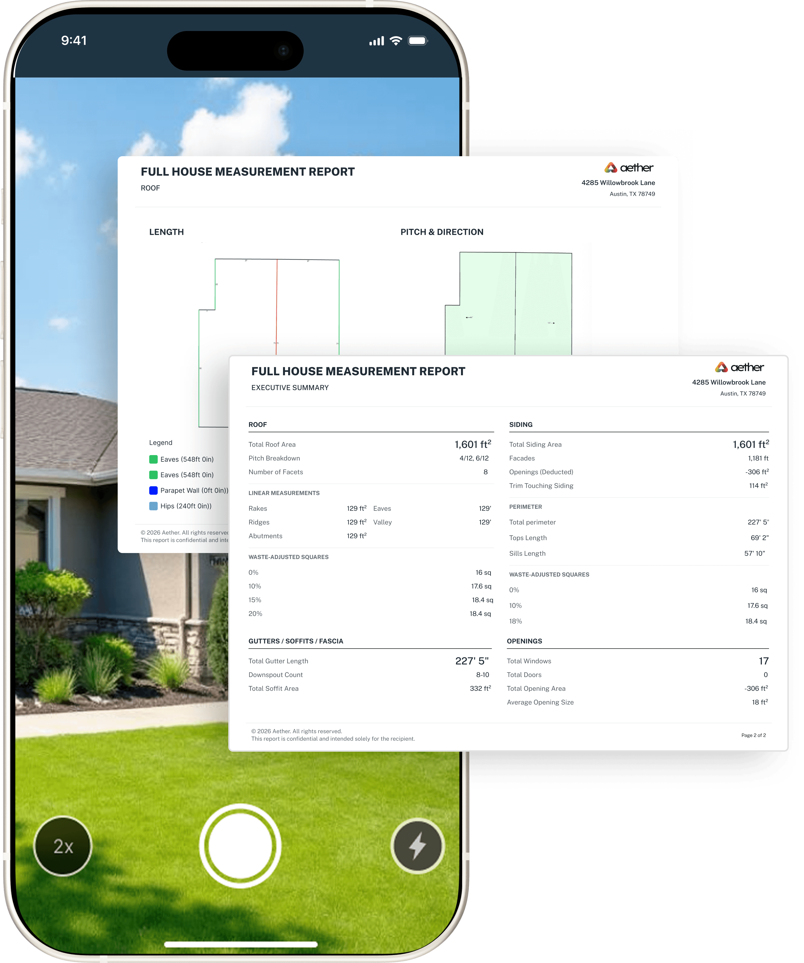 Use Aether for install ready, highly accurate orders. Within 2% of actual house measurements.